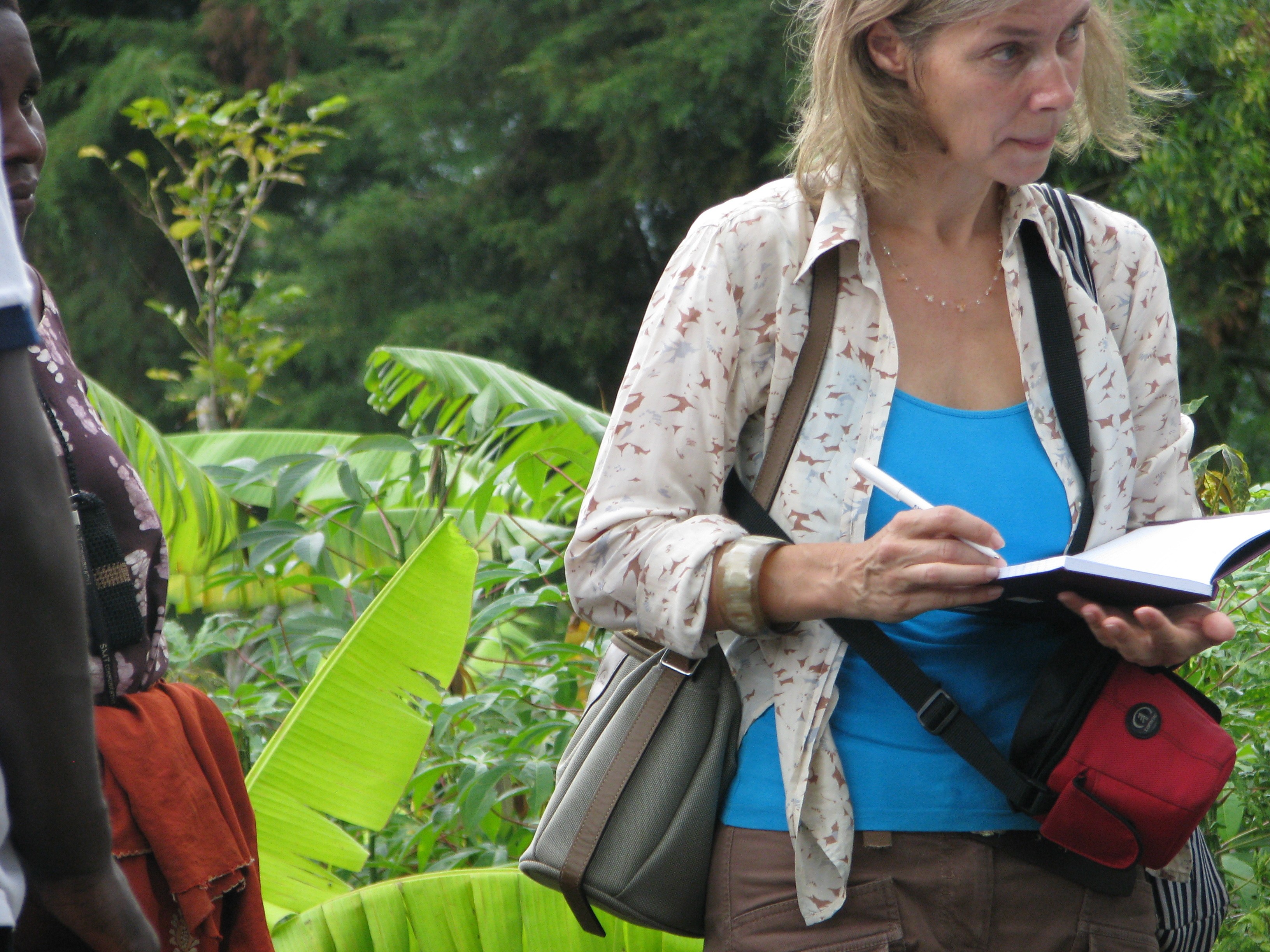 Det vil sige bjergskråningens kvinder. For i Uganda er det et kvindejob at hente vand. De fleste steder i landet balancerer kvinderne med vanddunke på hovedet. Men i Kasese foregår det på ryggen, fordi byrden så trods alt er lettere, når de tunge vandunke skal bæres kilometervis ad stejle skrænter.